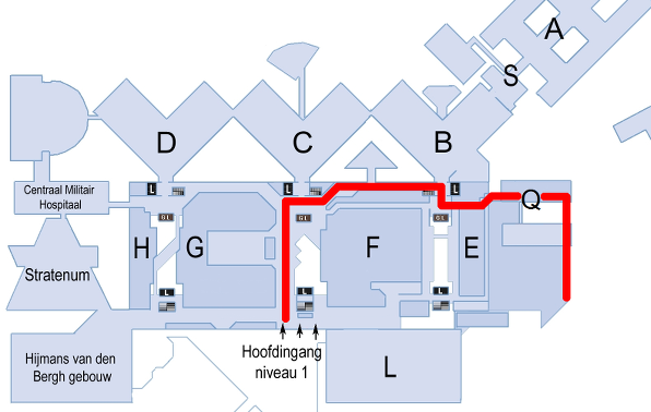 - At the main entrance of the UMC (that is on floor 1, you don't need any changes w.r.t. floor)